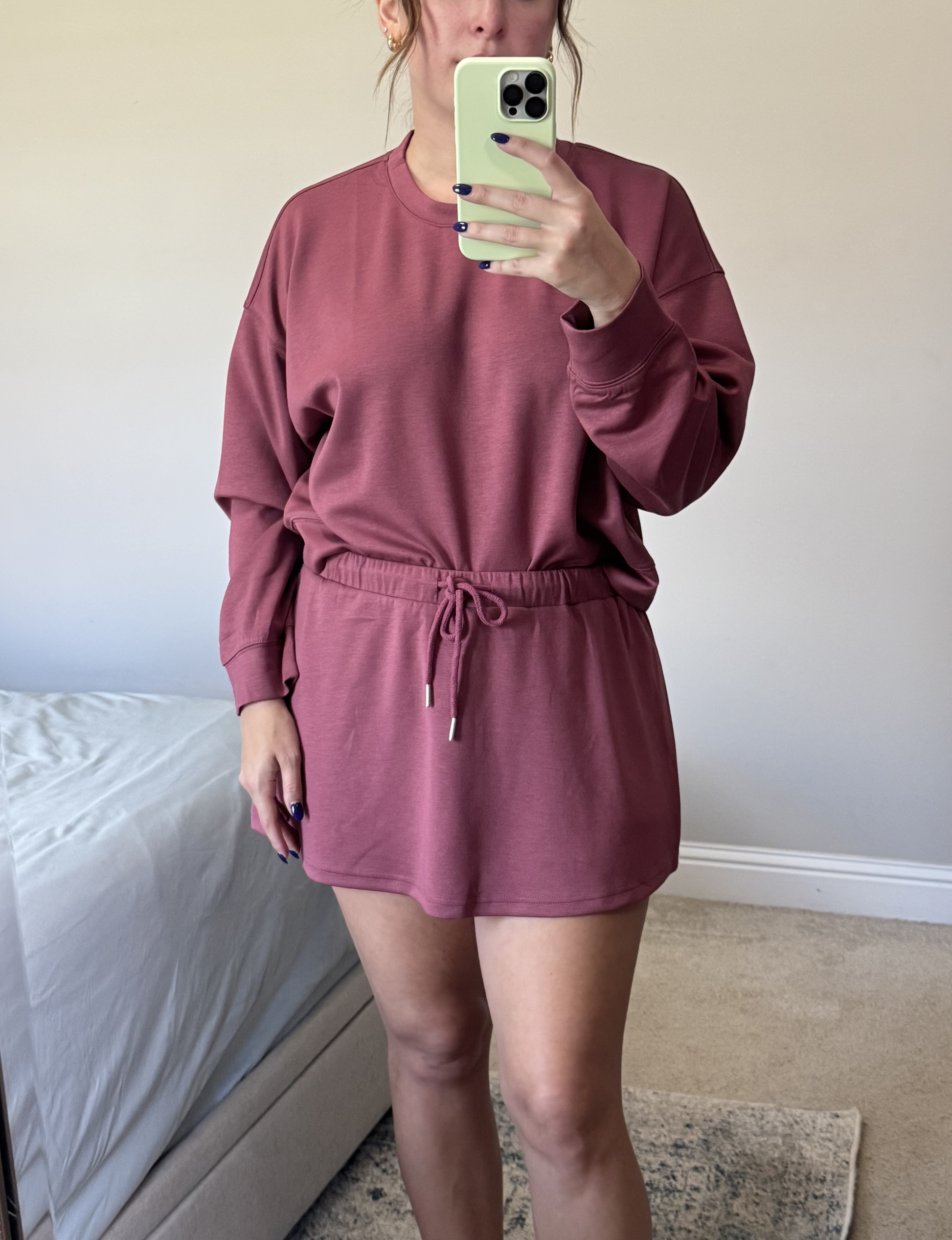 Round Neck Sweatshirt with Flare Skort Set - Dusty Rose